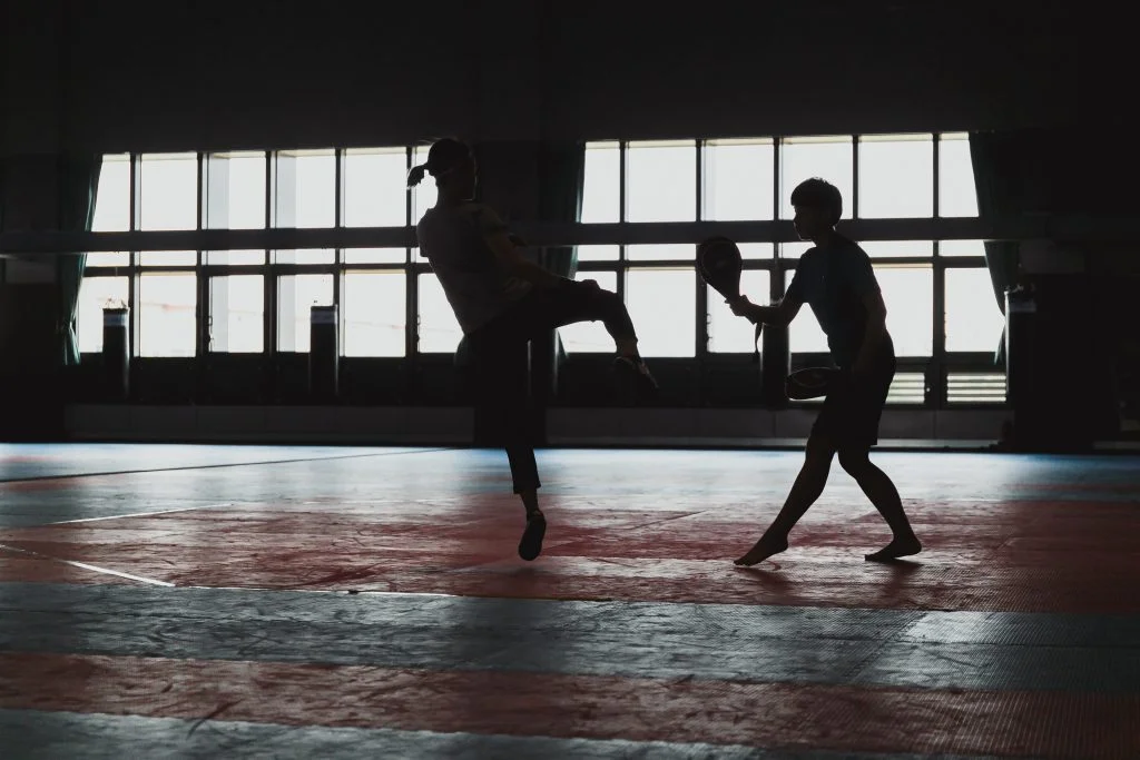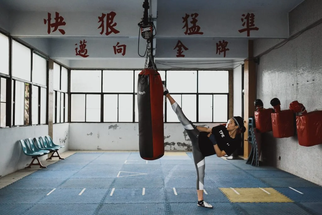 「砰!砰!」跆拳道館裡傳出有節奏的聲響,黃懷萱一次次踢擊沙包,就像是對著雙腿,千鎚百煉盼成鋼,而地板上的汗漬,正是耕耘意志力的鐵證。