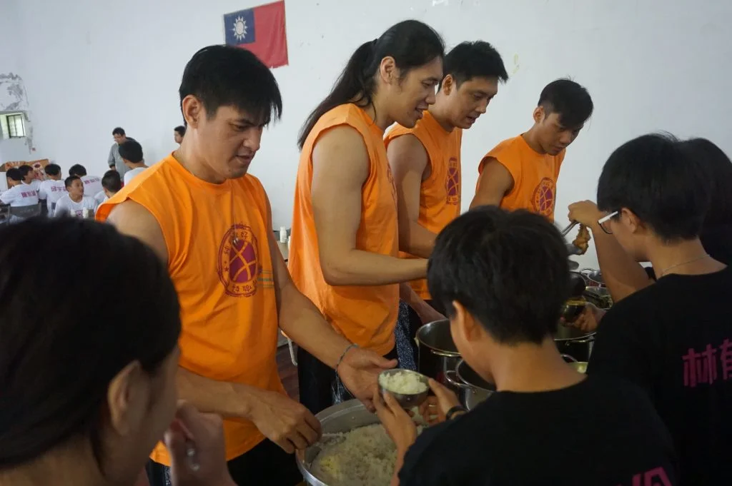 午餐時間,「純粹做好事」團隊充當打飯班。(圖/李宇政攝)