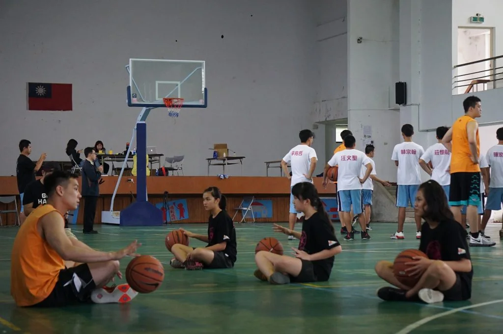 而下午長濱國中女同學加入練習,讓體育館更加熱鬧,雖然女籃屬於社團性質,基本動作還不太熟練,但大哥哥耐心地一個一個動作分解說明。
