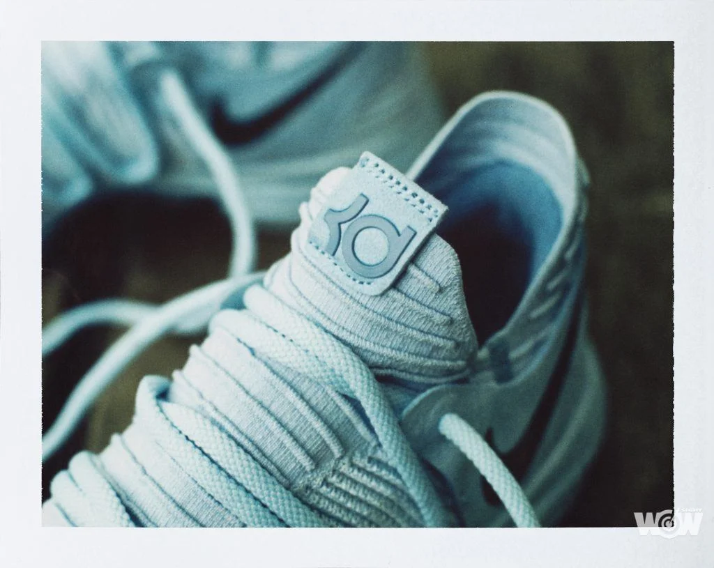 淡藍色的KD10 Anniversary將於5月26日起發售,其Nike標誌設計融入了Kevin Durant從大學起,所有球隊的顏色。這也是Nike首次用這種混搭、特製的Nike標誌設計來慶祝10周年。