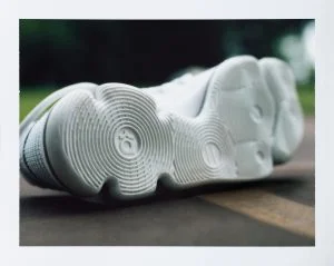 在受力點使用延展性低、韌性高的(類似於安全帶)織線,在鞋領和前掌處,運用延展性高的織線,兩者混合的應用,可說是技術能力上的傑作。這種織線組合,充分地平衡了籃球運動所特需的支撐力和如襪子般的貼合度。