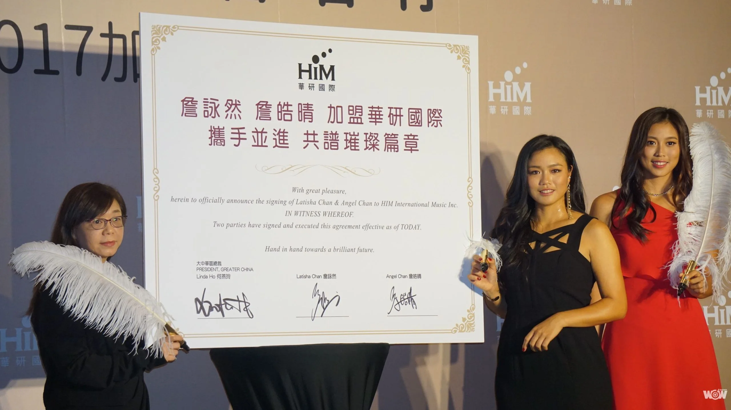 華研國際除了娛樂事業,如今也跨入體育圈,獲得網壇姐妹詹詠然和詹皓晴的加盟。華研國際大中華區總裁何燕玲今天表示,娛樂和體育本來就是一體,希望協助讓詹家姐妹更好,「讓她們成為華人之光。」