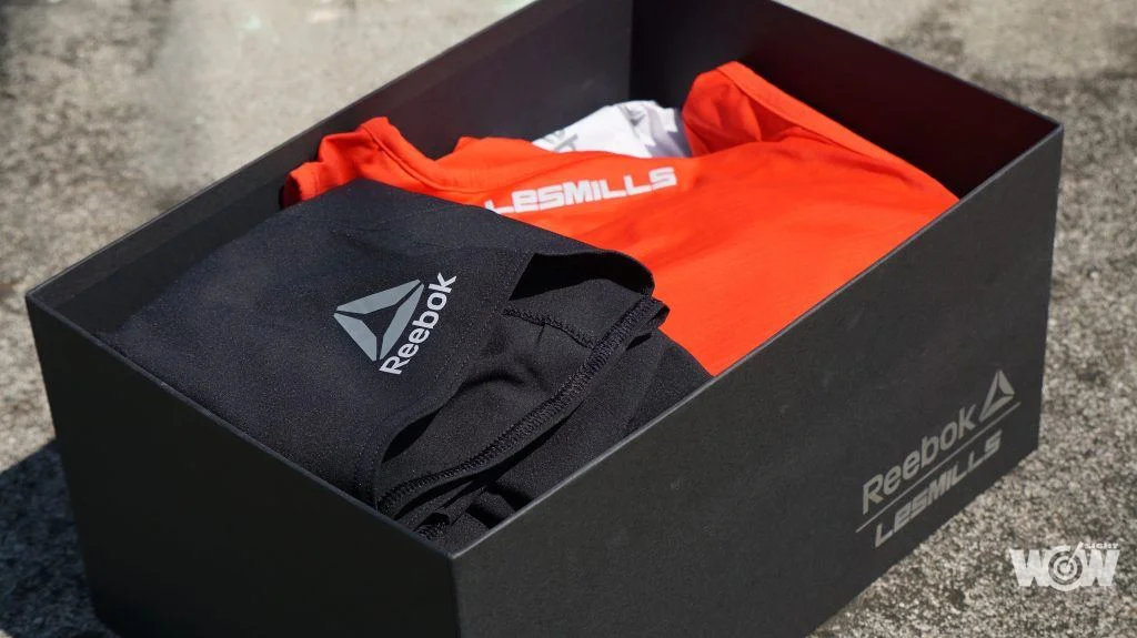 Reebok Les Mills精緻的包裝盒,裡頭是最新的服飾以及舒適的運動鞋。(圖/李宇政攝)