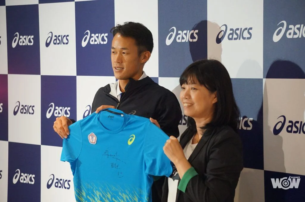 運動品牌亞瑟士今年開始提供裝備給莊吉生,如今選手斬獲佳績,台灣亞瑟士總經理謝玉真今天發獎金新台幣10萬元和裝備給莊吉生,希望他再接再厲。