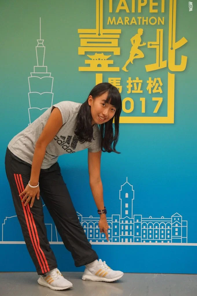 陳宇璿今天出席2017台北馬拉松記者會,由於她本身是愛迪達贊助選手,腳上穿的adidas台北世大運紀念款、UltraBOOST “Podium”白金配色吸引目光,順勢打開世大運裝備話題。