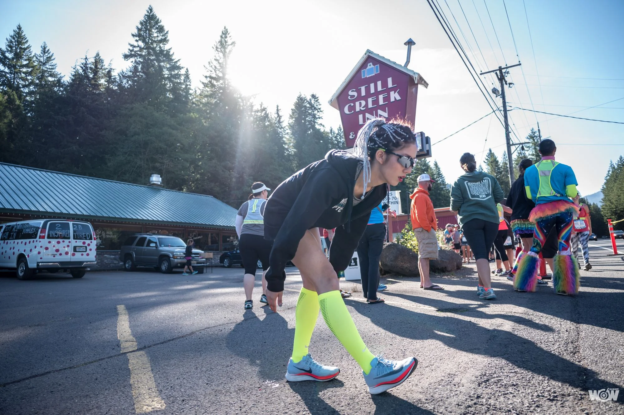 Hood to Coast(越山向海)人車接力路跑賽,耗時2天1夜、長度達320公里,賽道有平路或山路的起伏,還有柏油或碎石路面的變化,不僅考驗跑者的意志力,對鞋子也是一大挑戰。