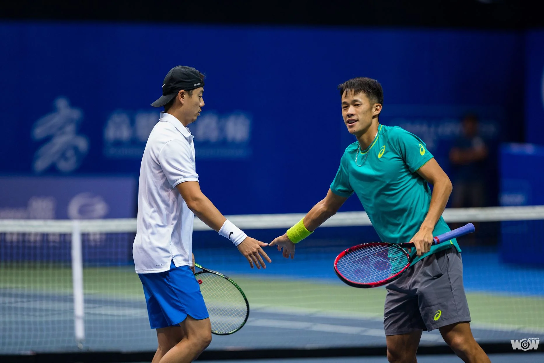 和教練王宇佐(左)合作雙打。(圖/海碩整合行銷提供)