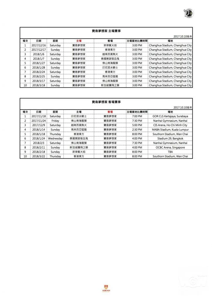 寶島夢想家正式成軍,ABL開季前3戰都是客場,11月18日首戰印尼泗水騎士隊,直到12月16日、17日才回到彰化,迎戰菲律賓火焰隊和香港東方隊。