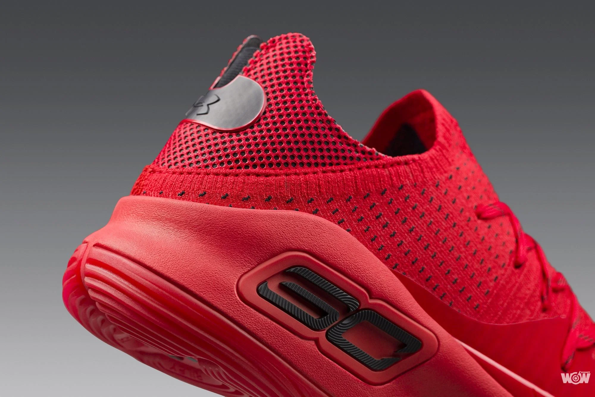 亮紅色鞋身搭配上腳後跟特殊網狀設計,象徵Curry號召社會一起捐贈蚊帳,並提升大眾對於防治瘧疾的關注。