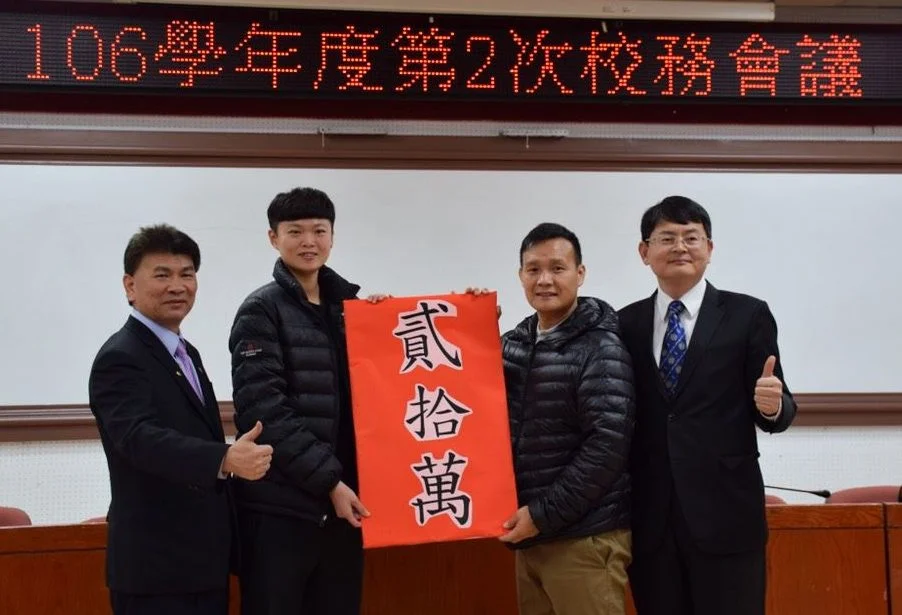 莊佳佳為了感謝母校臺北科技大學附屬桃園農工高級中等學校,以及教練團當年的栽培,上週捐贈20萬元回饋母校跆拳道隊,鼓勵桃園地區跆拳道發展,期許藉經由自身經驗,協助學弟妹在未來的賽事中獲得佳績。