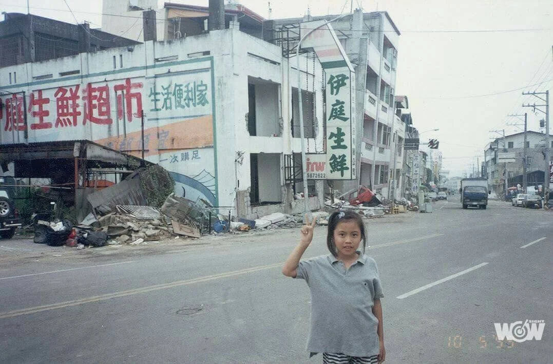 (封面圖/詹家經營的生鮮超市在921地震後變成瓦礫,劉雪貞解釋,當時地震心情很差,照片應該是保母拍的,也是唯一一張。劉雪貞提供)