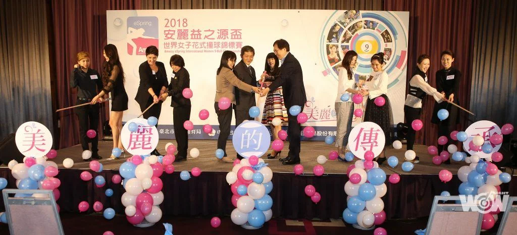 春天最美麗賽事、「2018安麗益之源盃世界女子花式撞球錦標賽」明天8日在台北體育館登場。「大眼妹」周婕妤和國內新生代「九球少女」陳佳樺並肩站在「美麗的傳承」看板前,這對師徒成最亮眼詮釋。