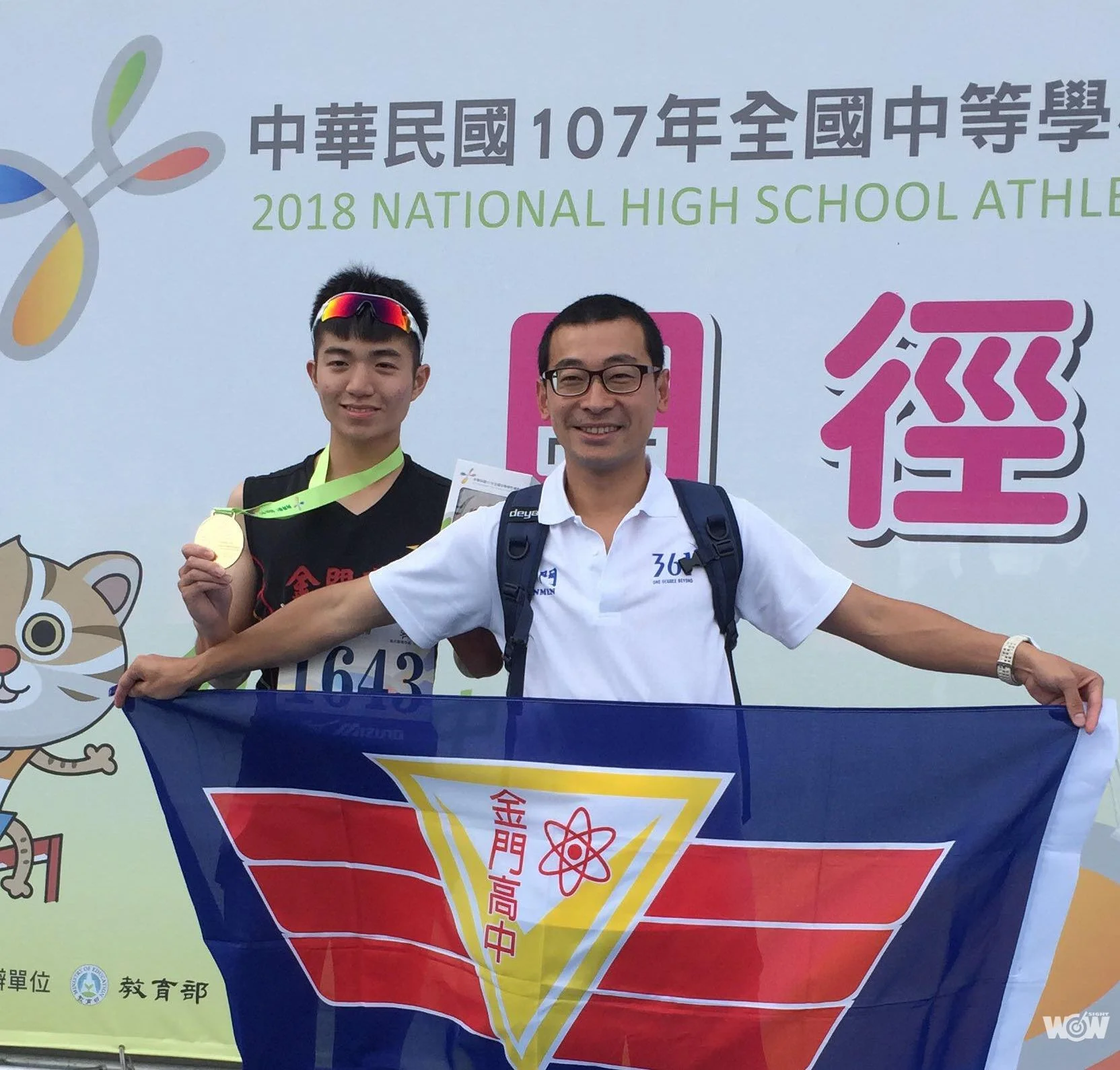 他很榮幸為金門贏得全中運田徑首金,「真的很開心,要繼續努力吧,然後很謝謝我國中的教練(謝佳鈞)和高中教練(林偉倫)。」