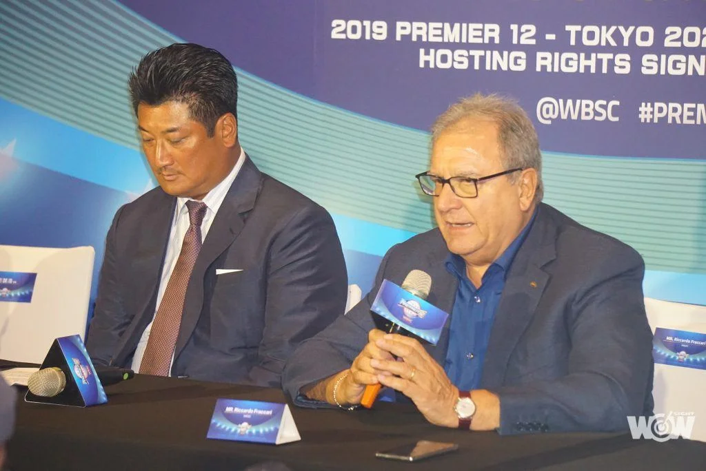 世界棒壘球總會會長 MR.Riccardo Fraccari、中華民國棒球協會理事長辜仲諒、台中市副市長林依瑩,今天正式簽約合作。林依瑩表示,身為地主,希望大家全力送中華隊進軍2020年東京奧運。