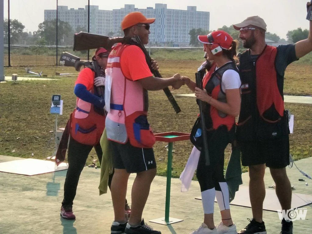 不定向飛靶混合賽決賽結束那刻,中華隊林怡君和楊昆弼以1分之差(42:43)輸給黎巴嫩隊,我國射擊飛靶隊收下銀牌,但四名選手相互道賀,打出精采一戰。楊昆弼說,「這天我的狀況不是很好,加上過去混雙,都沒進過決賽,第一次有點緊張。然後我們兩隊最後表現都很好,所以這場比賽感覺很棒,才會互相恭喜,我覺得就是已經全力以赴了,完全沒有留下遺憾。」