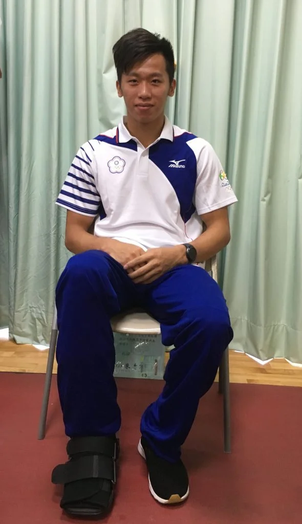 里約奧運出征前夕,李智凱右腳骨裂。(圖/李宇政攝)