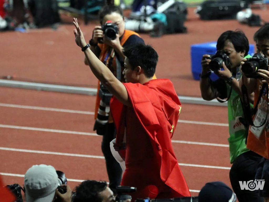最終蘇炳添跑出9秒92破大會紀錄(原紀錄是卡達飛人上屆仁川亞運9秒93)摘金,卡達Tosin Ogunode10秒00奪銀,日本山縣亮太10秒00銅牌,第四名沙烏地阿拉伯Abdullah Abkar10秒10第四名,決賽八強,前三名要10秒00門檻,最差為10秒26,這是亞運史上男子百米競爭最激烈一次。