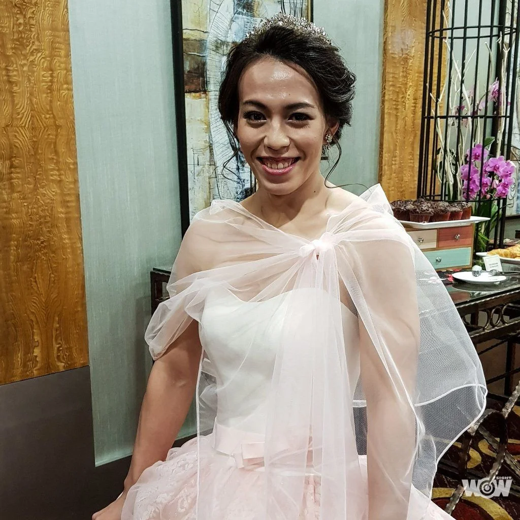 粉紅婚紗、下襬玫瑰花襯底,雅加達亞運舉重金牌郭婞淳擔綱表揚典禮共同主持,這不是她首次擔任主持人,但這樣子盛裝打扮是頭一回。
