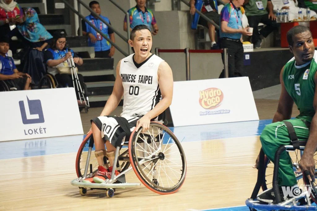 中華輪椅男籃隊昨天以60比47擊敗馬來西亞,今天再以71比56擊敗沙烏地阿拉伯,球員呂駿逸今天拿下全隊最高的22分。他謙虛地說,都是隊友配合他啦。中華隊接下來將面對日本、韓國。