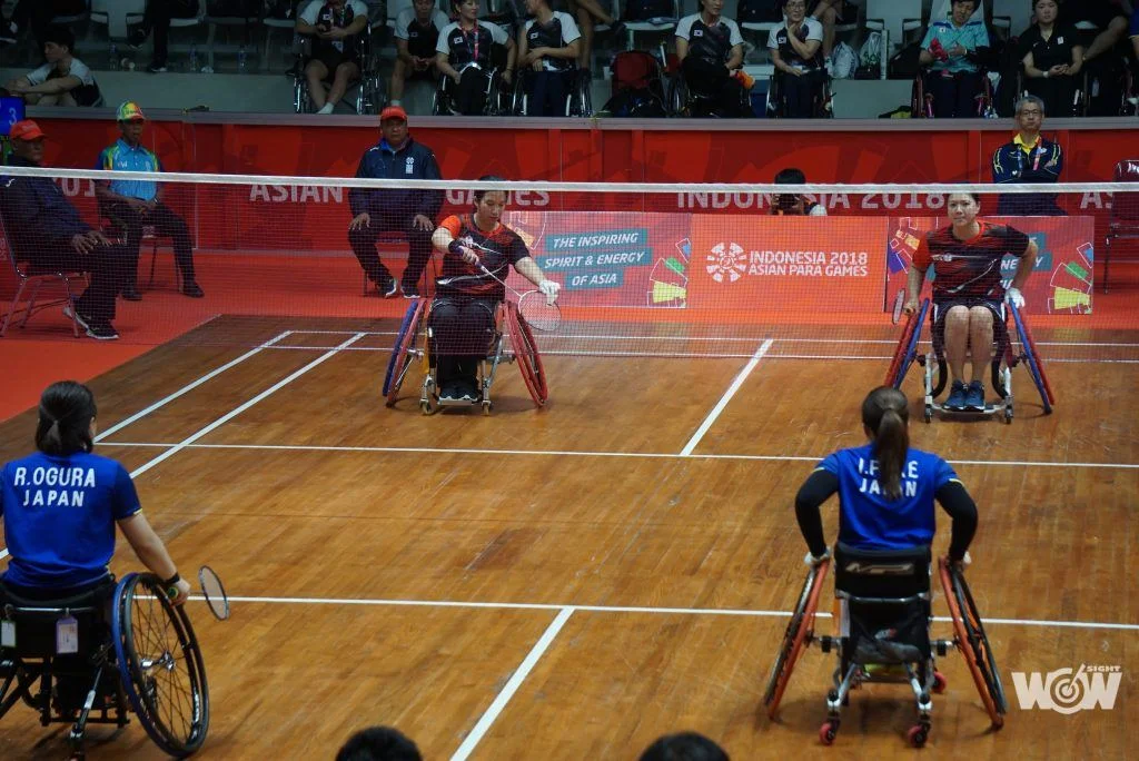 本屆亞帕運中華羽球隊首度有女將,輪椅組女雙 WH1-2 的胡光秋和楊伊宸成為先驅,兩人今天面對日本組合,以15比21、15比21落敗,無緣晉級4強。