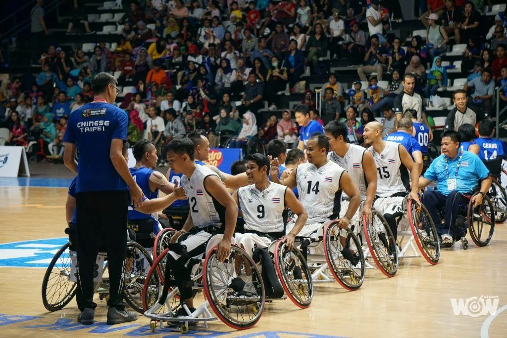中華輪椅男籃隊在預賽前兩場連續擊敗馬來西亞、沙烏地阿拉伯,接下來敗給日本、韓國,今天在排名賽遭遇另外一組的泰國,不敵對方出色的身材。