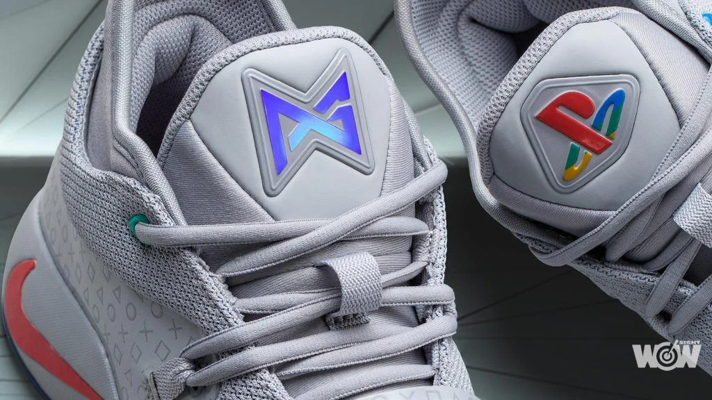 Nike 籃球設計師在這雙 Nike PG 2.5 x PlayStation上,將標誌性的PlayStation符號應用於該鞋款的側面。與PG2不同的是,這雙鞋運用了代表著初代遊戲機的灰色,並在鞋舌部位搭配經典的四色Play Station 標誌。