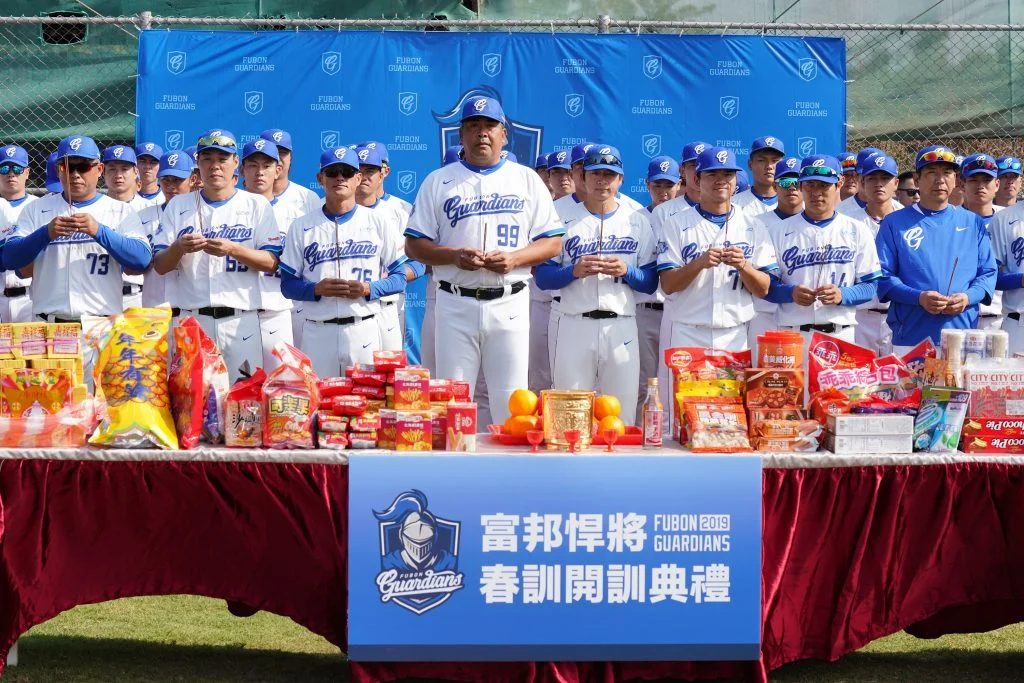 富邦悍將春訓開訓典禮,陳連宏總教練率領全隊進行團拜。
