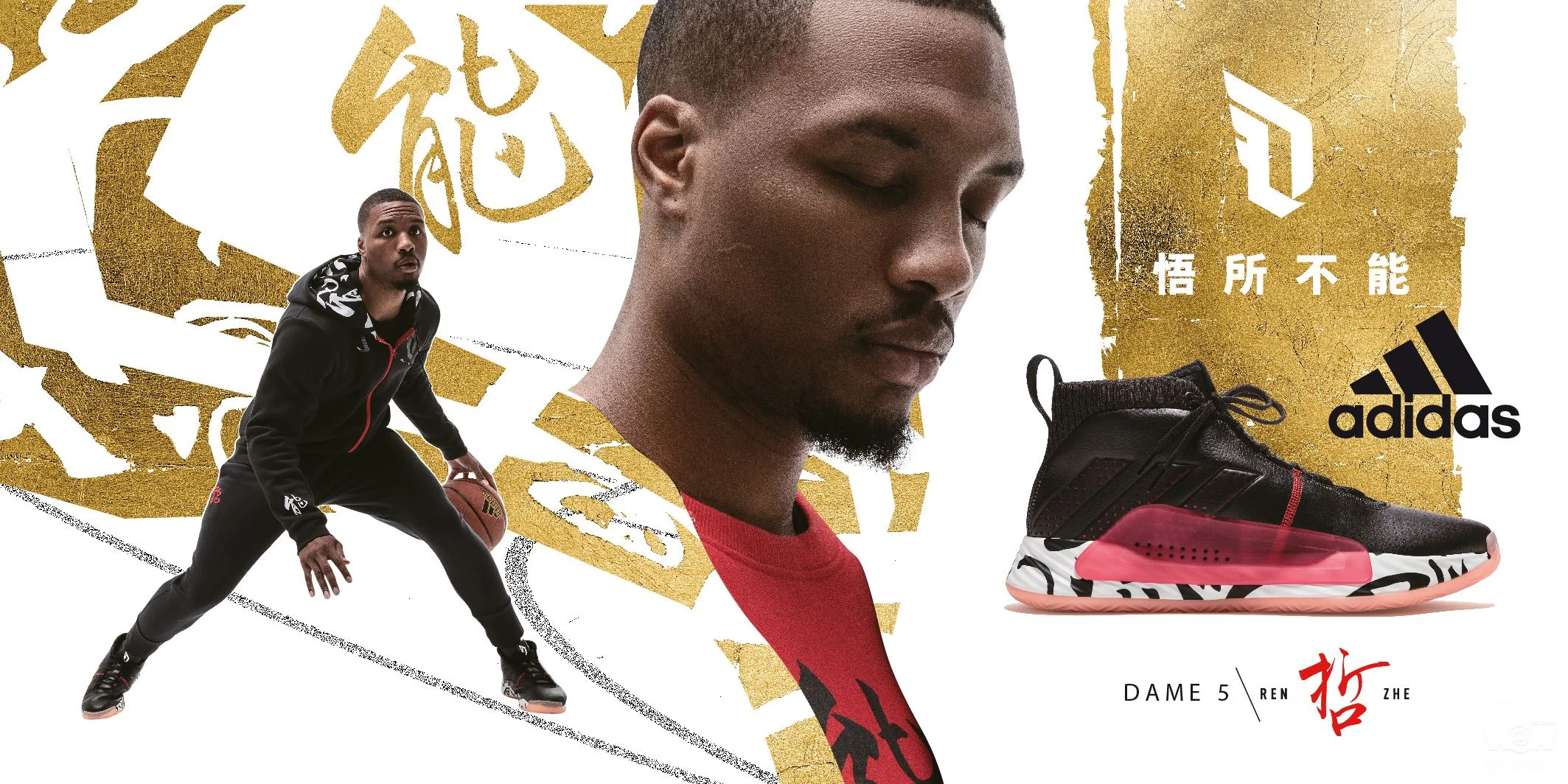 adidas 發布 NBA 拓荒者隊明星控球後衛 Damian Lillard 第五代簽名戰靴DAME 5,適逢今年為豬年,聯手中國著名雕塑藝術家任哲推出新年專屬版本──「悟所不能」,特別結合《西遊記》中的角色「悟能」,也就是豬八戒,鞋款於1月14日上市。