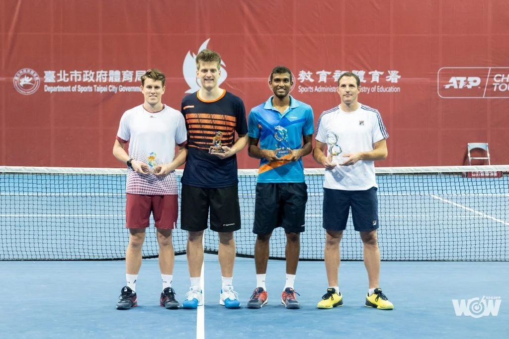 2019華國三太子國際男子網球挑戰賽今天在臺北市網球中心展開決賽,奧地利好手Dennis Novak第一次到台灣,就榮獲生涯第一座ATP挑戰賽單打冠軍,雙打由「印以組合」巴拉吉/埃利希(N.Sriram Balaji/Jonathan Erlich),首度搭檔就拿下冠軍。