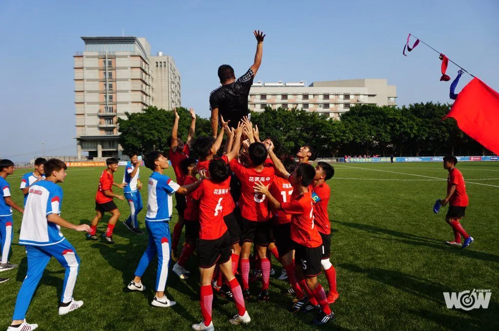 高男冠軍戰,花中上半場2比0領先,不過北門下半場連趕2球,讓戰局呈現膠著。球賽第81分鐘,花中吳彥澍踢進約25碼的自由球,全隊欣喜若狂,接下來順利守成,迎接隊史第一冠。