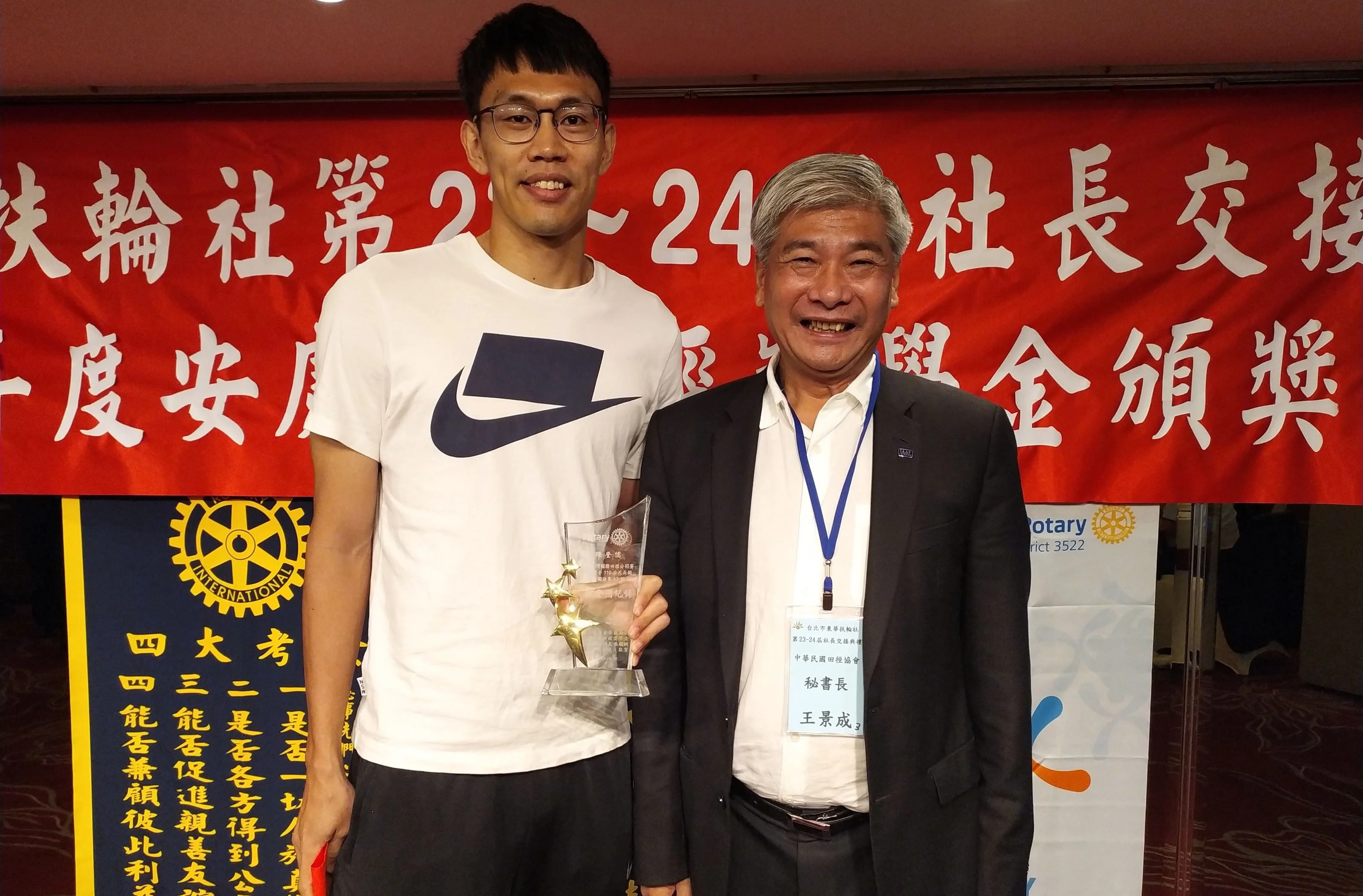 台北市東華扶輪社安慶隆田徑獎學金今天舉辦第10屆頒獎典禮,中華民國田徑協會秘書長王景成特別感謝東華扶輪社長期培育基層,近年選手在台北世大運和雅加達亞運表現突出,期許明年東京奧運能一舉奪得金牌。