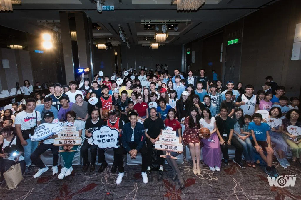 粉絲最期待的贈獎抽獎活動,現場送出林書豪限量簽名球帽及籃球等紀念品,獲獎粉絲驚喜又興奮,參與人員最後依序近距離與偶像合影,全場200人也留下大合影,一起祝「華航60週年生日快樂」。