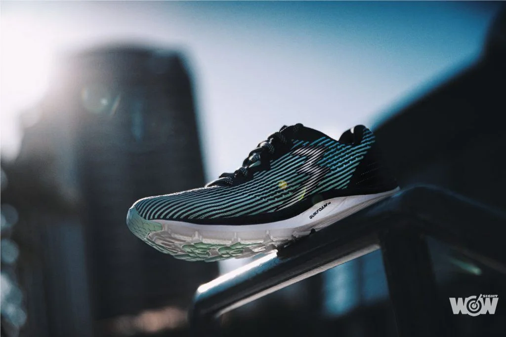 豐厚柔軟的EVA內嵌獨家科技材質QU!KFOAM於前掌及後跟區域,同時藉由QU!KFOAM特殊配方所蘊含的優異回彈性,緩解道路反饋於足部的衝擊力道,觸發緩震回彈的跑步感受。