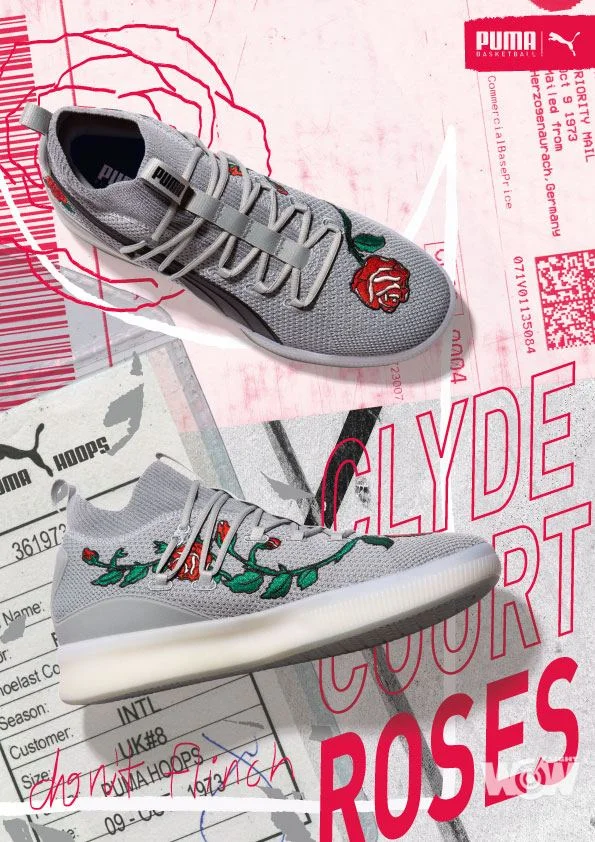 在這波 Clyde Court 來台名單中,還包含亞洲限定版 PUMA Clyde Court Roses,在淺灰編織鞋面上以精緻工藝刺繡上朵朵玫瑰,為爆發力十足的籃球運動增添一抹柔和氣息,另一款以 X 光透視裸骨配色的 PUMA Clyde Court X-Ray 則直接將 X 光片上的腳骨壓印在鞋面上,大玩籃球瘋搞怪創意。
