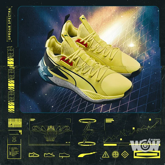 而 PUMA Uproar 也在此次登台之列,以異世代混合體自居,揉合狂野與極具侵略性的 90 年代設計風格,植入 PUMA Hoops DNA, PUMA Uproar Spectra 採雙層中底堆疊而成,上層以 PROFAOAM 科技帶來輕量優勢與高能量回彈,下層置入 HYBRID 混合式科技於鞋跟,有效吸收落地衝擊,避震防護更全面,鞋底以耐磨橡膠大底包覆,增強耐久性及摩擦力,頂級雙層高機能針織網眼鞋面,提供透氣、舒適及高包覆效果,TPU 後跟穩定裁片升級支撐防護,滿足籃場中後衛位置球員需快速步移雙腳的高扭力需求。