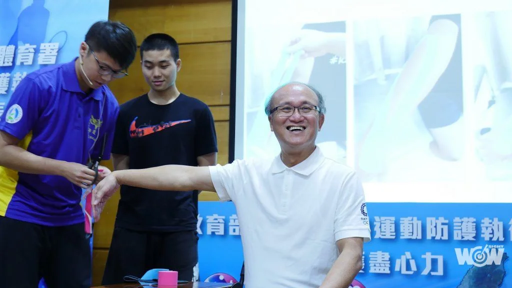 記者會現場同時邀請南山高中防護人員吳崇豪示範貼紮,邀請教育部常務次長親自體驗當運動員受防護員之照顧,而平鎮高中防護人員黃敬家示範滾筒放鬆也邀請到體育署副署長體驗滾筒放鬆的感覺,豐原高商防護人員胡雅涵示範彈力帶訓練,藉由現場示範放鬆、貼紮、訓練三大防護主軸,讓大眾了解運動防護的重要性。