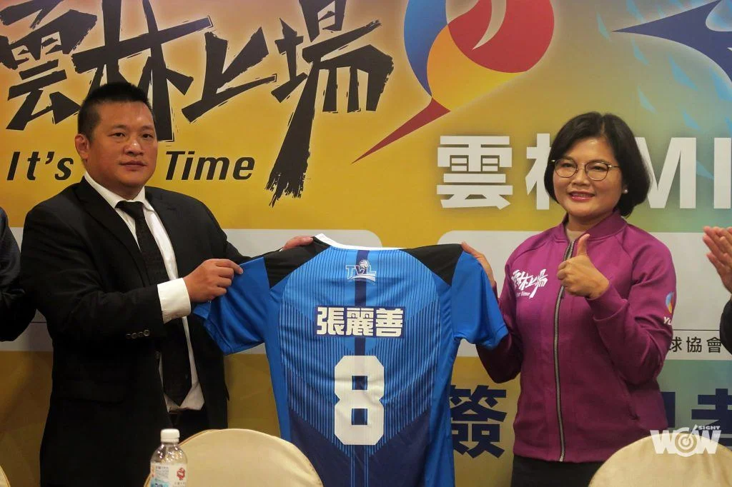 「很榮幸有這機會跟美津濃合作,雲林縣長期培育許多體育人才,雲林孩子很有潛力,剛結束的桃園全運會,我們也拿到8金、8銀和10銅的好成績。」雲林縣長張麗善出席雲林縣政府和美津濃男排冠名合作記者會,現場還直接套上全新球衣。