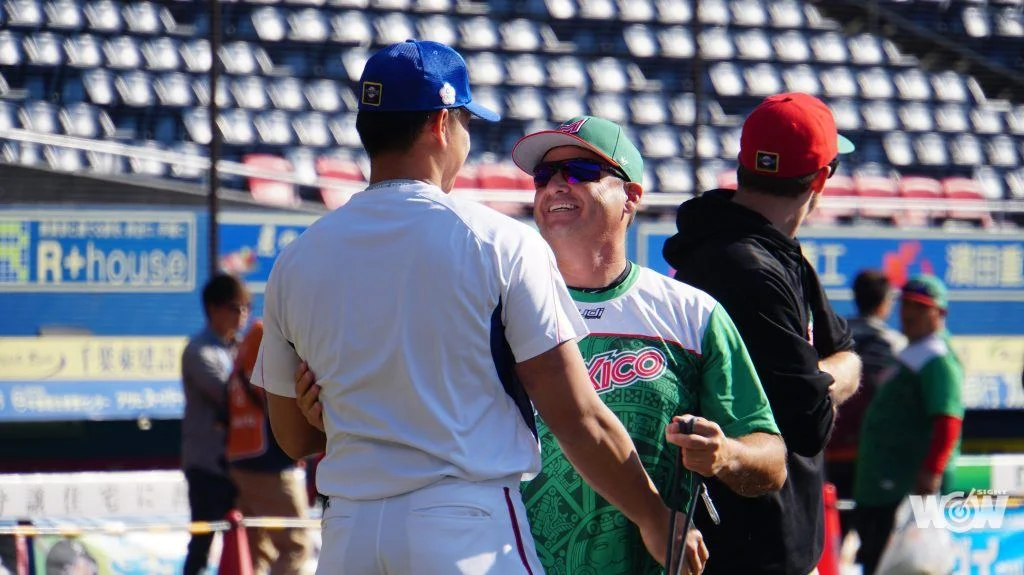 晉級6強的球隊,今天依序在ZOZO海洋球場練習,墨西哥練完換中華隊,恰好兩隊球員有些交情,包括江少慶、林凱威、曾旅美的胡金龍與郭嚴文等人,都紛紛走上前聊天。江少慶說:「對方教練跟防護員都是我們印地安人小聯盟系統的,去打聲招呼。」