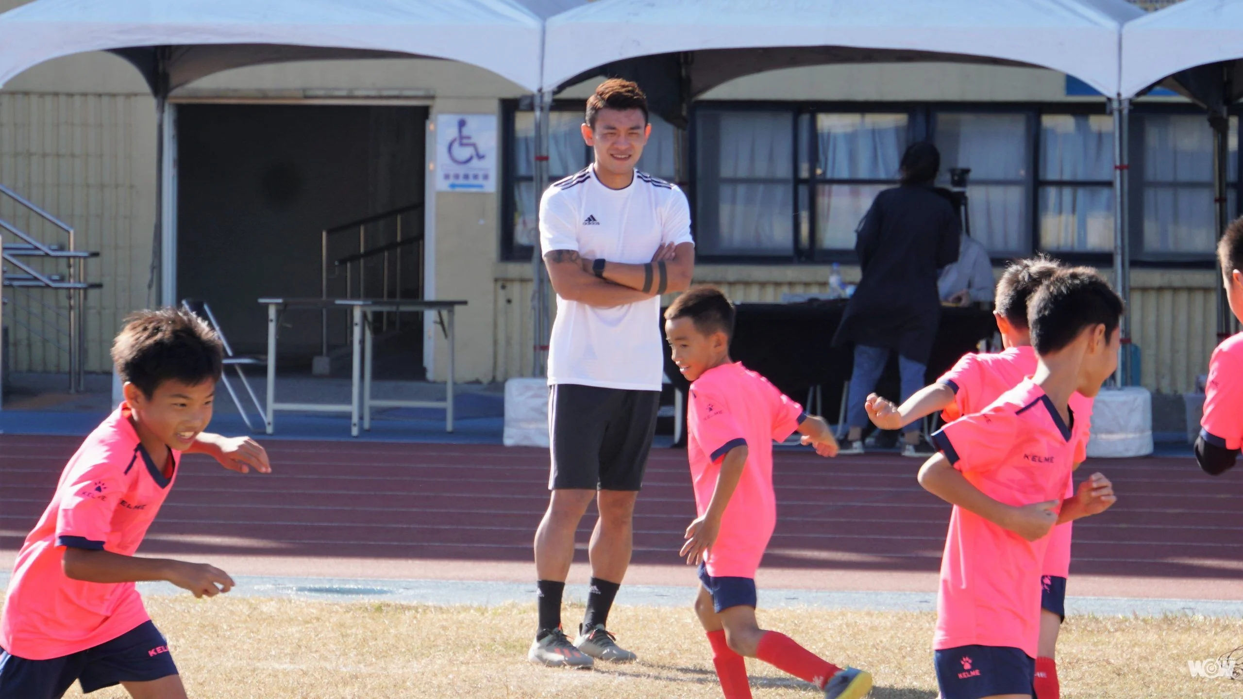 教練的專業指導,搭配孩子的歡聲笑語,讓彰化縣立田徑場熱鬧非凡,尤其是友誼賽時,小學員喊著「陳柏良!」、「陳柏良踢這邊!」此起彼落,更令人莞爾。陳柏良說:「看到他們開開心心地踢球,享受足球,總會讓我想起小時候選擇足球的原因,踢球是我最快樂的時光!」