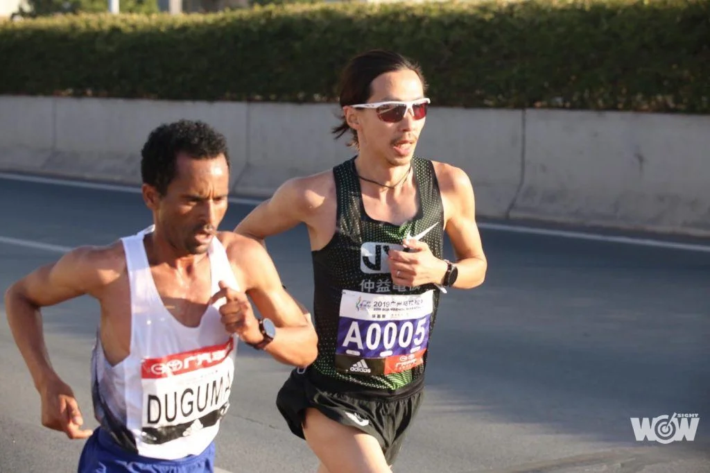 「2:15:02」,跑進廣州馬拉松終點那刻,張嘉哲握緊拳頭,心情很興奮,因傷等待了8年,終於再次突破個人最佳,離許績勝的全國紀錄(2小時14分35秒)更近,更有機會爭取東京奧運男子馬拉松參賽門票。