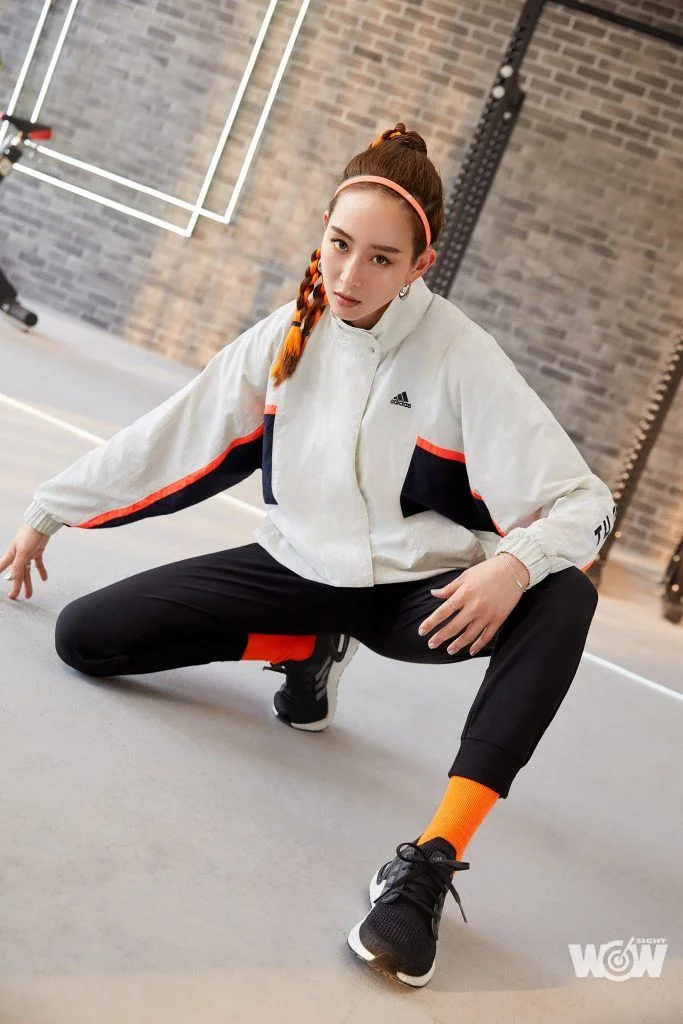 代言人張鈞甯以W.N.D外套展現女性幹練率性,寬鬆剪裁打造休閒街頭風格。整體以白色為主色調,撞色色塊設計結合亮眼橘色點綴,後背飾以標誌性的品牌元素THREE STRIPES字樣,簡約有型又顯活力。立領設計搭配輕薄防風面料,時尚抵禦台灣乍暖還寒的早春氣候,完成令人眼睛一亮的OOTD日常穿搭,引領2020運動時尚潮流。