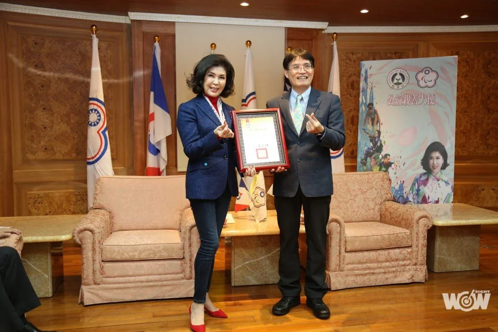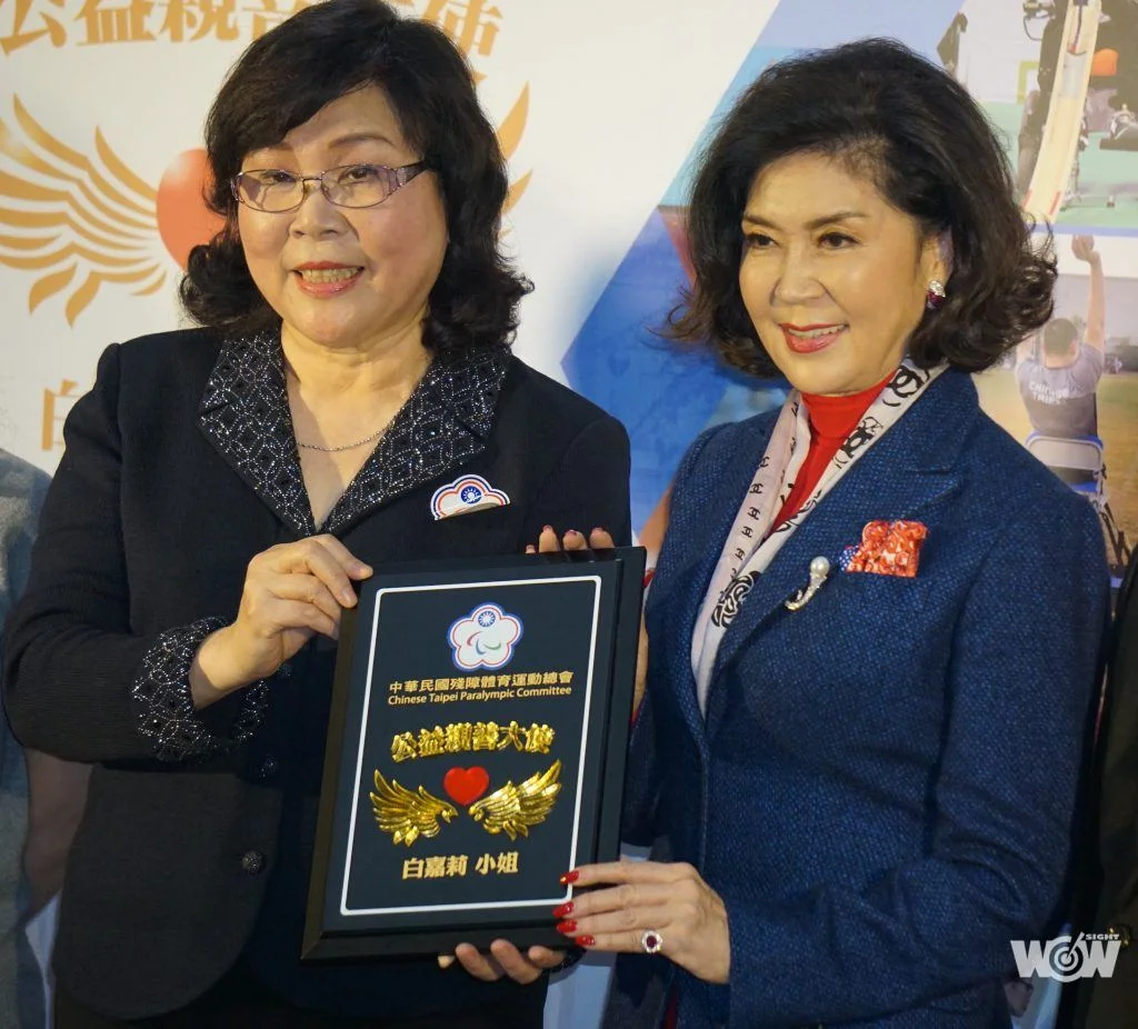 殘總表示,在殘總理事王以德暨「中華民國腦性麻痺協會」副理事長龍鳳舞介紹,白嘉莉得知東京帕運即將登場,身心障礙好手正積極努力備戰,白嘉莉對此深受感動,並決定情義相挺,捐贈個人畫作,殘總也在今天頒授白嘉莉「公益親善大使」。
