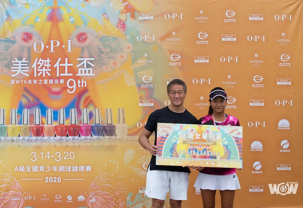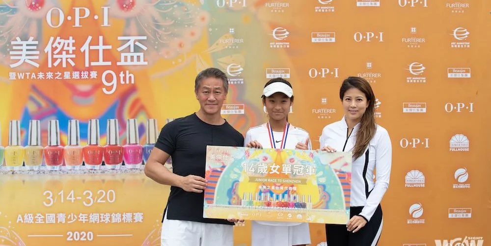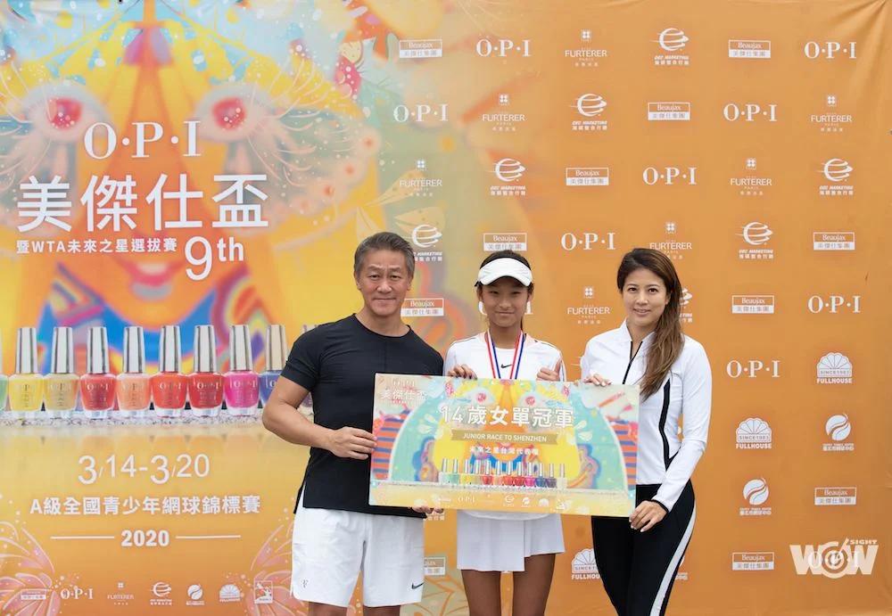 封面圖/美傑仕集團陳睿豐總裁、陳美彤副董事長頒發WTA未來之星參賽資格予14歲女單冠軍朱秝亞。