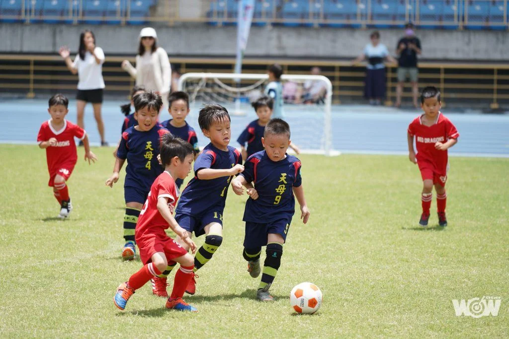 在最後一天賽程中,各組競爭也隨著炎熱的天氣逐漸加溫,參賽的球隊中有位已在幼兒足球經營23年的「偶像」教練,這次帶著來自林口、龜山的南蒂亞、愛愛幼兒園等多達5隊參賽,場邊幫忙加油助陣的家長也同樣聲勢浩大,讓現場比賽的熱度提高許多,「偶像」教練說:「幼兒足球這個階段主要就是在打底,重點在鼓勵小孩多參與和多玩,提升他們對足球的興趣。」