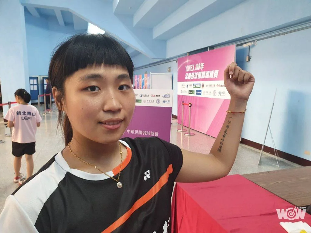 那時候陪伴李芷蓁度過低谷的,就是「一切都是最好的安排」。她告訴自己,若拿冠軍,就要將這句名言刺上身,去年6月第二次全國排名賽奪冠,她實現諾言。