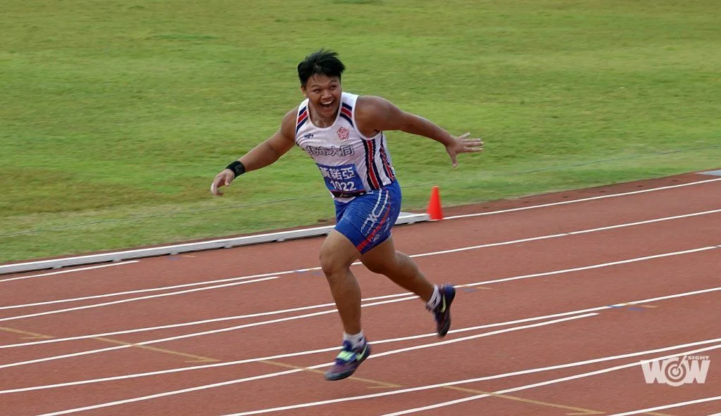 「最後一次,沒有壓力,鉛球畢竟副項,不要去多想什麼,把動作重新想過一遍,然後關鍵應該就是心態放開來,才能逆轉他,但也替他突破最佳感到高興。」黃諾亞專項為鐵餅,所以全力以赴後沒有遺憾。