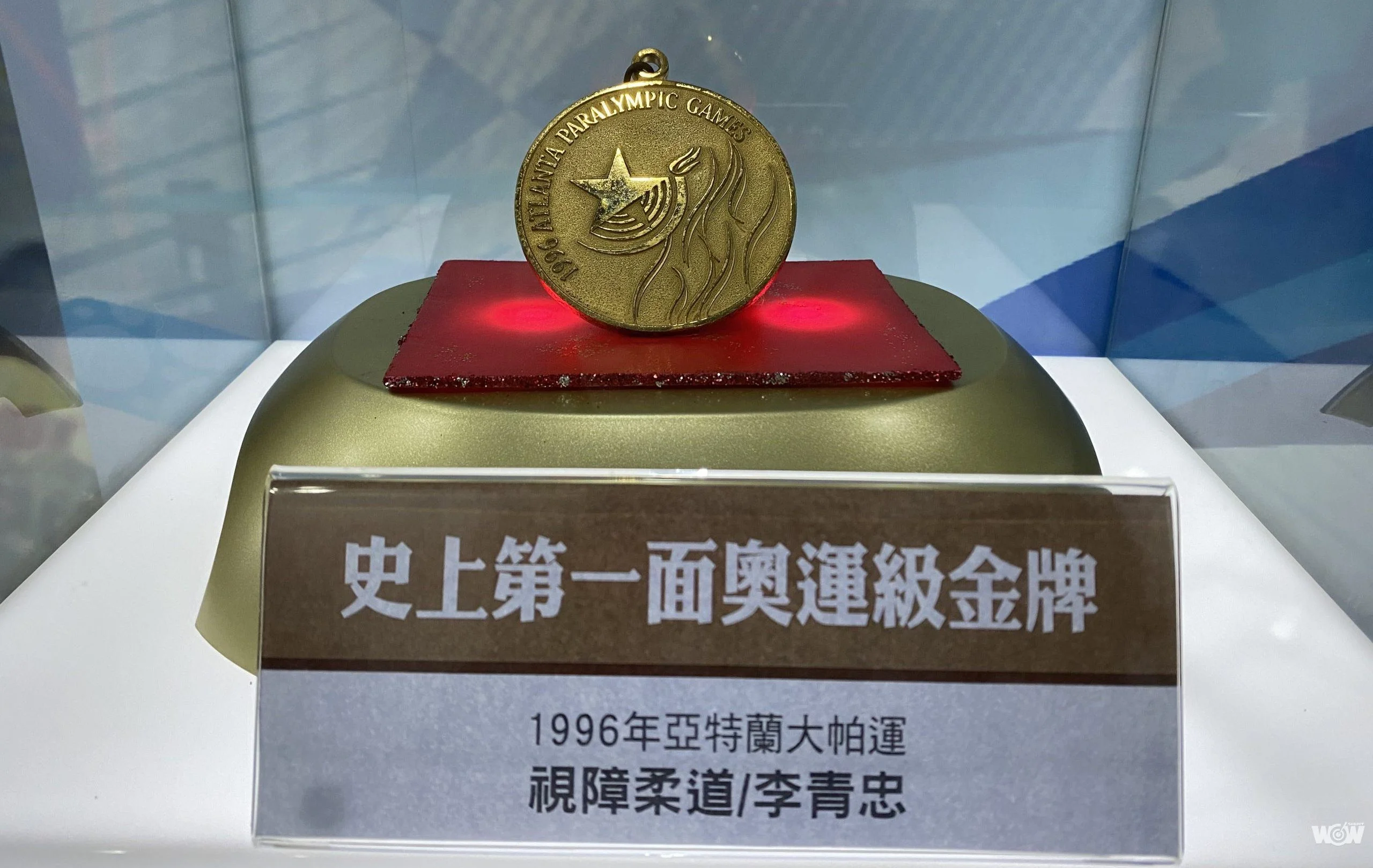 殘總指出,視障柔道選手李青忠參加一九九六年亞特蘭大帕拉林匹克運動會(帕運),奪下臺灣史上首面帕運金牌,如此深具意義的金牌在「運動專業館」展出。