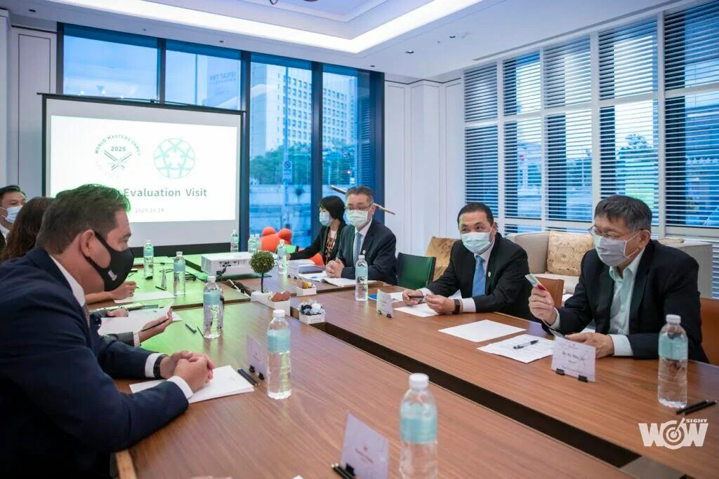 臺北市與新北市共同申辦2025年世界壯年運動會(以下稱世壯運),從2019年提交申辦意向書後就開始積極準備,今年因全球疫情影響,以視訊方式進行國際申辦會議,而台灣成為3個申辦城市中唯一安排參訪的國家,14日臺北市長柯文哲與新北市長侯友宜接待來自瑞士的訪視委員,並會談交流意見。