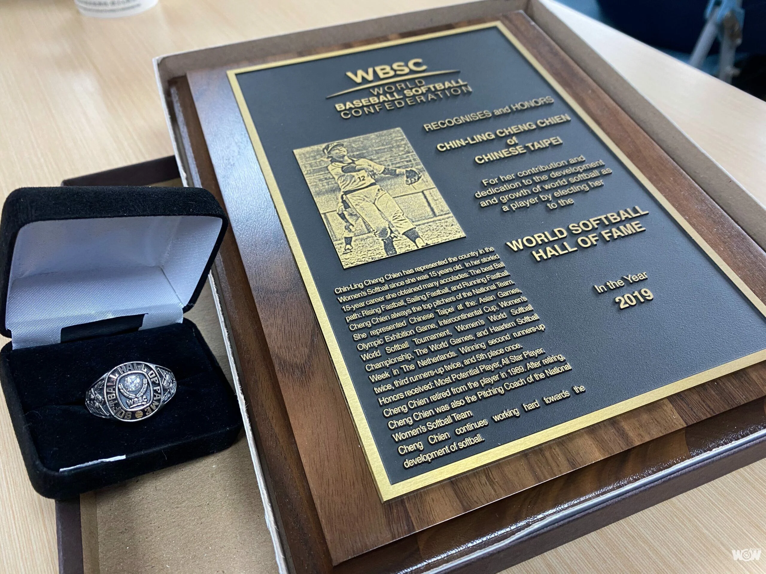 張簡金玲去年入選「世界棒壘球總會」(WBSC)名人堂,但受到疫情影響沒有出國領獎。