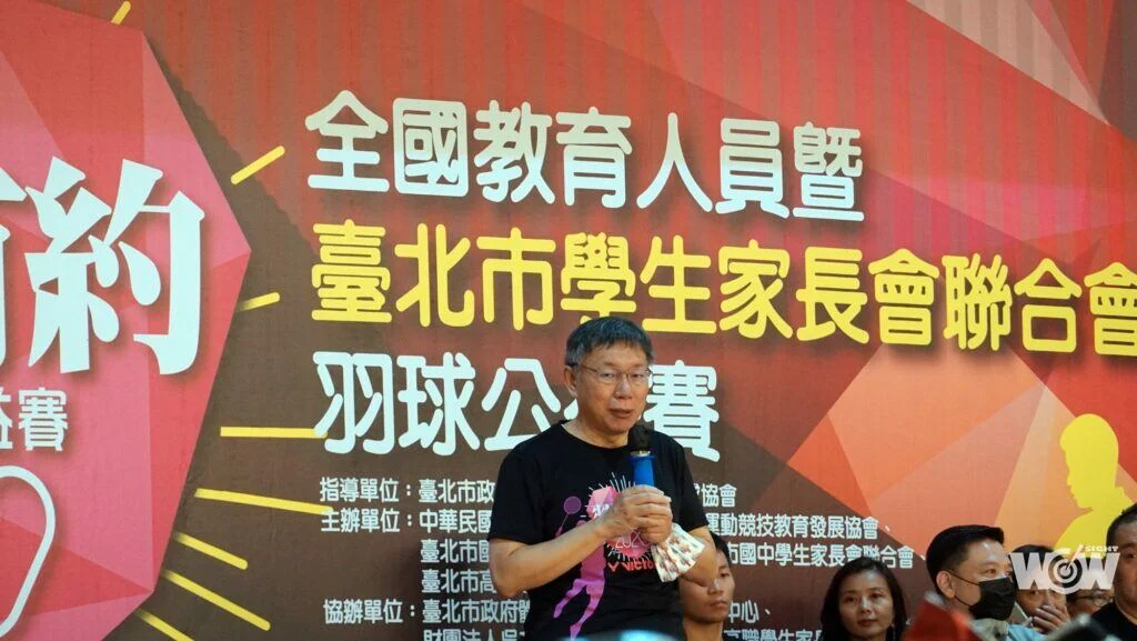 「教育主體是學生,圍繞著學生,還有家長、學校教師、教育局等等,這幾年教育局受到家長聯合會很多幫助,像這羽您有約的活動參加人數一年比一年多,小朋友還當裁判,從選手當裁判,換位思考,觀察比賽進行,回去當選手會更有意義,而且小選手當裁判,宣揚運動與法治精神,都相當有意義。」柯文哲致詞時表示學校扮演城市推動的領頭羊、啟動器,期望教育成為國家進步的火車頭,他並與「麟洋配」搭配進行開球儀式。
